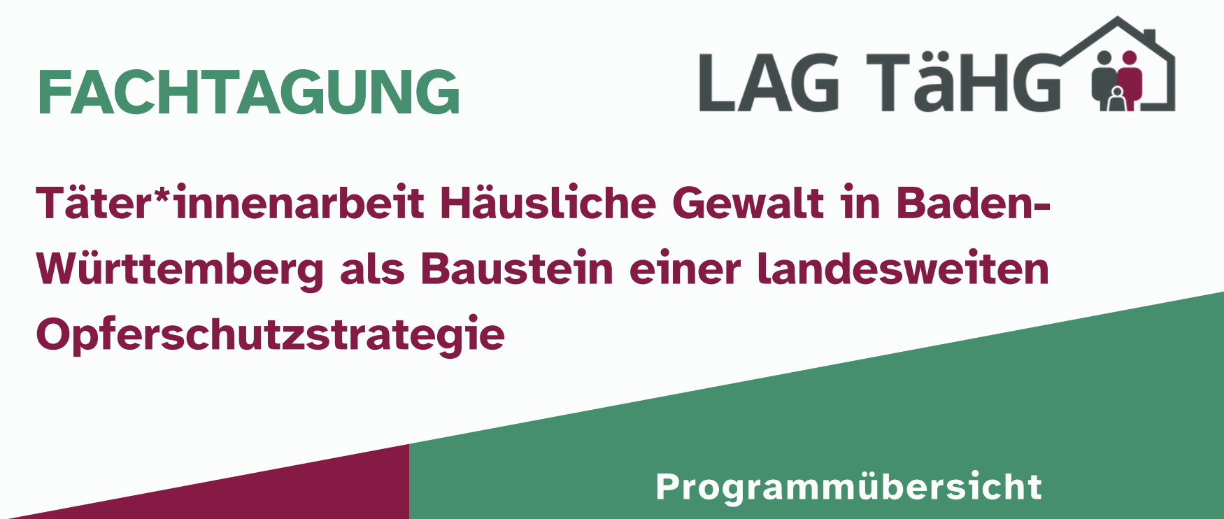Am Montag, 13. Oktober 2025, findet von 9:30 - 17:00 Uhr die Fachtagung mit dem Titel: "Täter*innenarbeit Häusliche Gewalt in Baden-Württemberg als Baustein einer landesweiten Opferschutzstrategie" statt. Die Veranstaltung findet im Literaturhaus Stuttgart statt. Nach der Begrüßung und Einführung durch Christina Gröbmayr, Vorstandsvorsitzende LAG TäHG BW e.V. und Staatssekretärin Frau Dr. Ute Leidig (GRÜNE), Ministerium für Soziales, Gesundheit und Integration Baden-Württemberg, begrüßen wir Frau Prof. Dr. Rebecca Bondü und Frau Michaela Gosch (MBA). Die beiden Referentinnen bereichern die Fachtagung mit je einem Referat zu den Themn „Leaking erkennen – mit GaTe-RAI Risiken besser einschätzen: Tötungsdelikte im sozialen Nahraum frühzeitig verhindern“ und „Verpflichtende Gewaltpräventionsberatung - Täter*innenarbeit und ihre Bedeutung für den Opferschutz”. Nach den Referaten stehen in den Workshops Expert*innen aus der Täterarbeit, aus den Landeskriminalämtern, der Polizei, aus Verbänden und Organisationen bereit, um mit den Tagungsgästen zu verschiedenen Themen zu arbeiten. Die Fachtagung endet nach einer Podiumsdiskussion, die mit entsprechenden Expert*innen besetzt ist. zur Einladung
